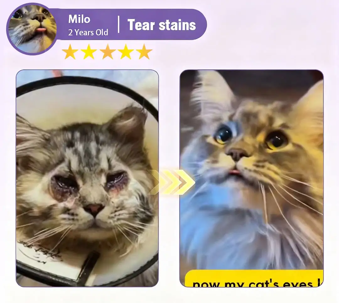 “I got this because my cat’s eyes were always watering and leaving tear stains. We live in a place with a lot of pollen and dust, so I usually vacuum almost every day and wash their bedding every week. But after my surgery, I couldn’t keep up with cleaning, and her eyes got even more irritated. These drops really helped calm them down, and they worked great. Now her eyes look so much better!”